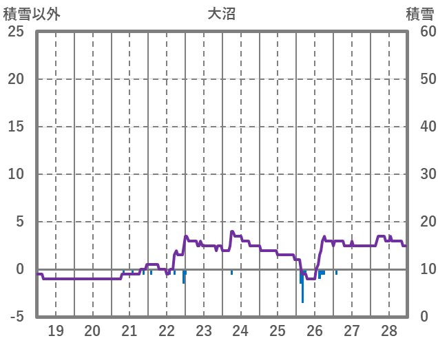 | 日 | 時 | 気温 | 降水 | 風向/風速 | 日照 | 積雪 | 降雪 |
