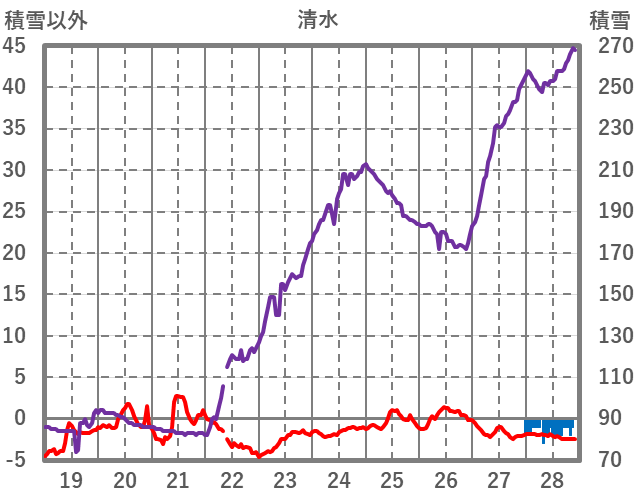 | 日 | 時 | 気温 | 降水 | 風向/風速 | 日照 | 積雪 | 降雪 |