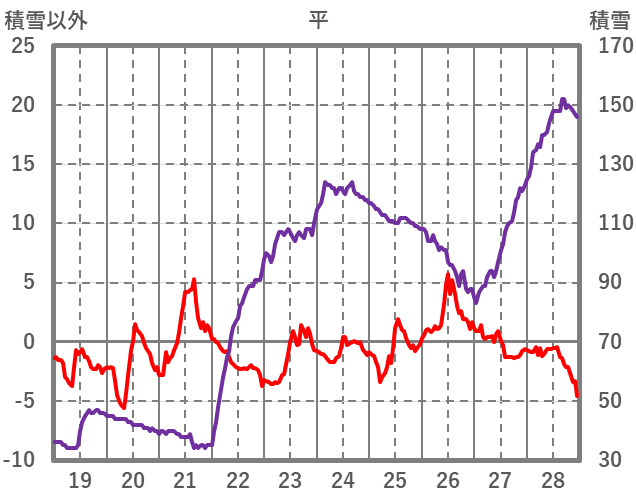 | 日 | 時 | 気温 | 降水 | 風向/風速 | 日照 | 積雪 | 降雪 |