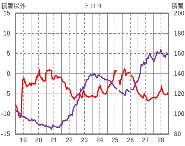 | 日 | 時 | 気温 | 降水 | 風向/風速 | 日照 | 積雪 | 降雪 |