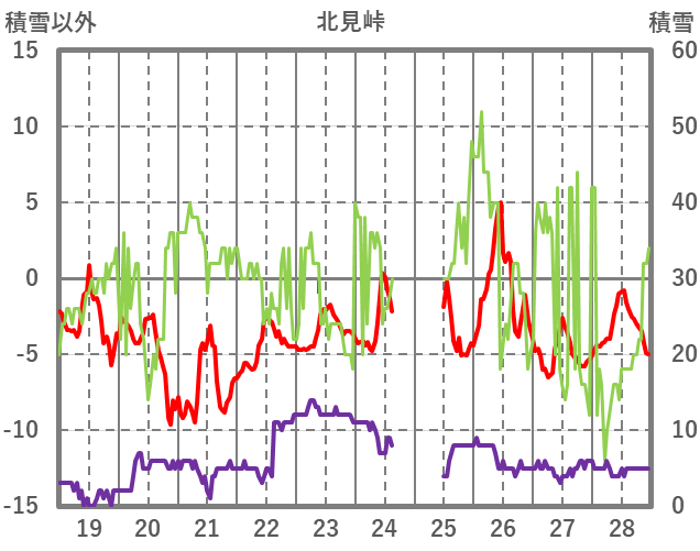 | 日 | 時 | 気温 | 降水 | 風向/風速 | 日照 | 積雪 | 降雪 |
