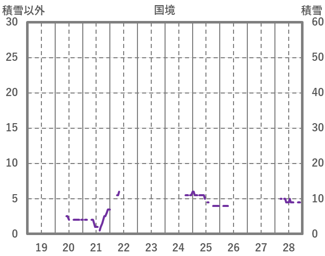 | 日 | 時 | 気温 | 降水 | 風向/風速 | 日照 | 積雪 | 降雪 |