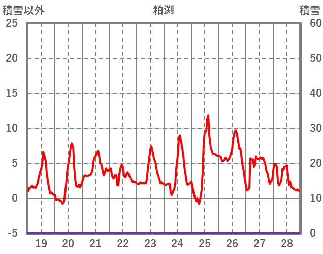 | 日 | 時 | 気温 | 降水 | 風向/風速 | 日照 | 積雪 | 降雪 |