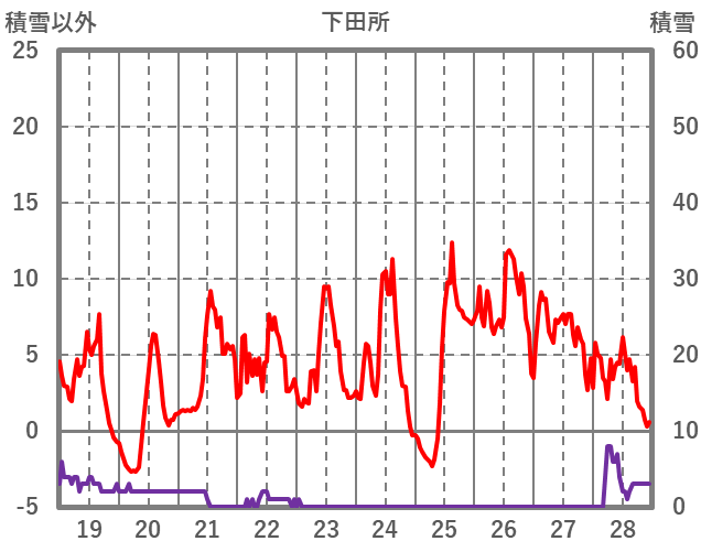 | 日 | 時 | 気温 | 降水 | 風向/風速 | 日照 | 積雪 | 降雪 |
