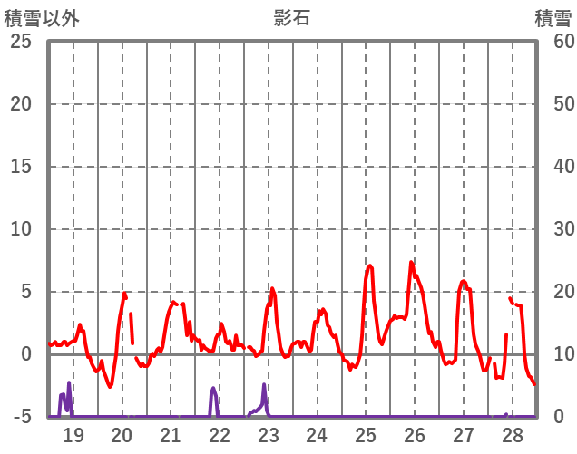 | 日 | 時 | 気温 | 降水 | 風向/風速 | 日照 | 積雪 | 降雪 |