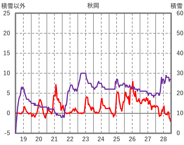 | 日 | 時 | 気温 | 降水 | 風向/風速 | 日照 | 積雪 | 降雪 |