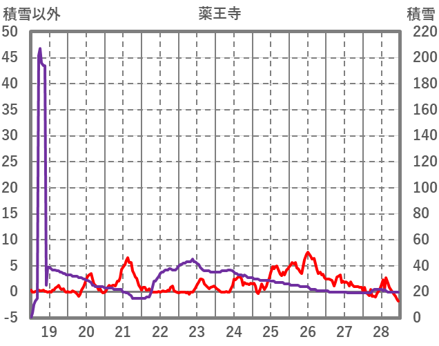 | 日 | 時 | 気温 | 降水 | 風向/風速 | 日照 | 積雪 | 降雪 |