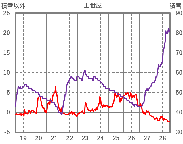 | 日 | 時 | 気温 | 降水 | 風向/風速 | 日照 | 積雪 | 降雪 |