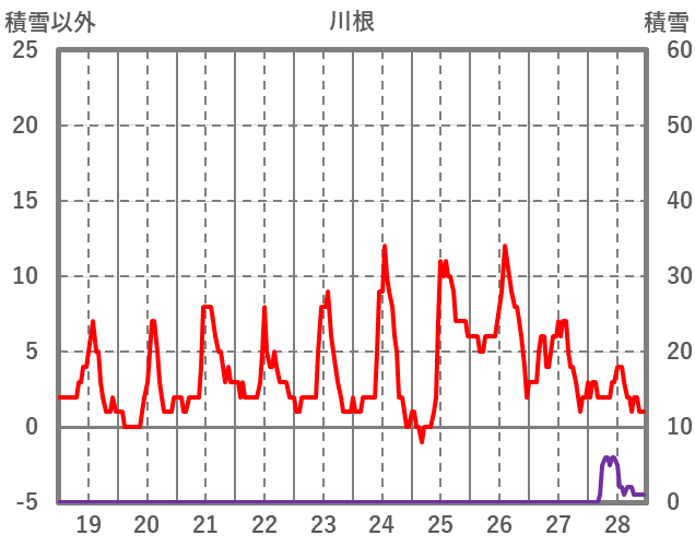 | 日 | 時 | 気温 | 降水 | 風向/風速 | 日照 | 積雪 | 降雪 |