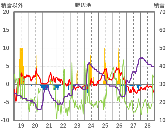 | 日 | 時 | 気温 | 降水 | 風向/風速 | 日照 | 積雪 | 降雪 |