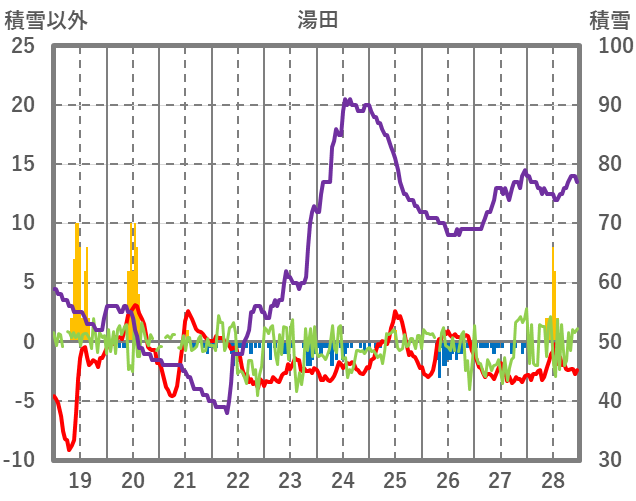 | 日 | 時 | 気温 | 降水 | 風向/風速 | 日照 | 積雪 | 降雪 |