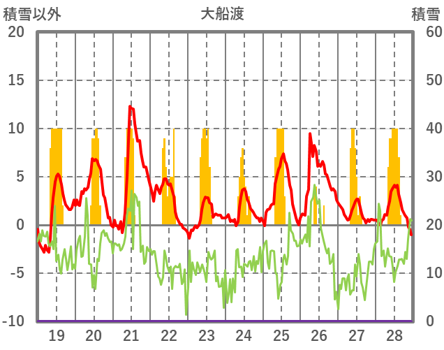 | 日 | 時 | 気温 | 降水 | 風向/風速 | 日照 | 積雪 | 降雪 |