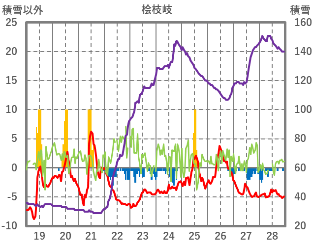 | 日 | 時 | 気温 | 降水 | 風向/風速 | 日照 | 積雪 | 降雪 |