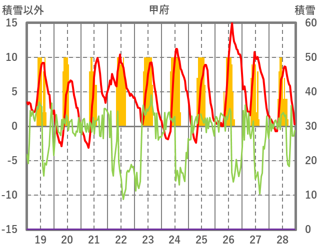 | 日 | 時 | 気温 | 降水 | 風向/風速 | 日照 | 積雪 | 降雪 |