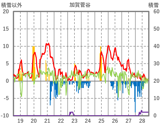 | 日 | 時 | 気温 | 降水 | 風向/風速 | 日照 | 積雪 | 降雪 |