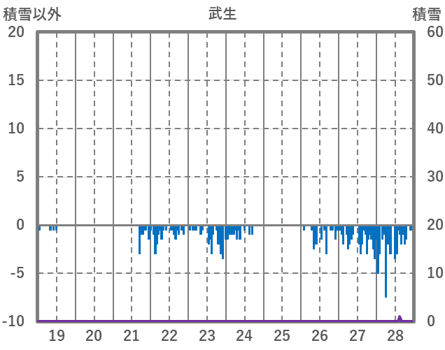 | 日 | 時 | 気温 | 降水 | 風向/風速 | 日照 | 積雪 | 降雪 |