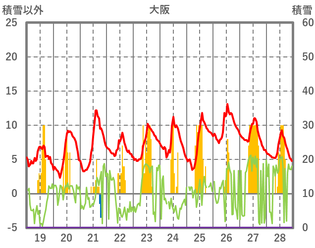 | 日 | 時 | 気温 | 降水 | 風向/風速 | 日照 | 積雪 | 降雪 |