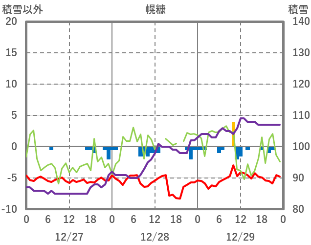 | 日 | 時 | 気温 | 降水 | 風向/風速 | 日照 | 積雪 | 降雪 |