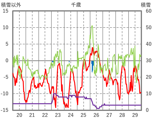 | 日 | 時 | 気温 | 降水 | 風向/風速 | 日照 | 積雪 | 降雪 |