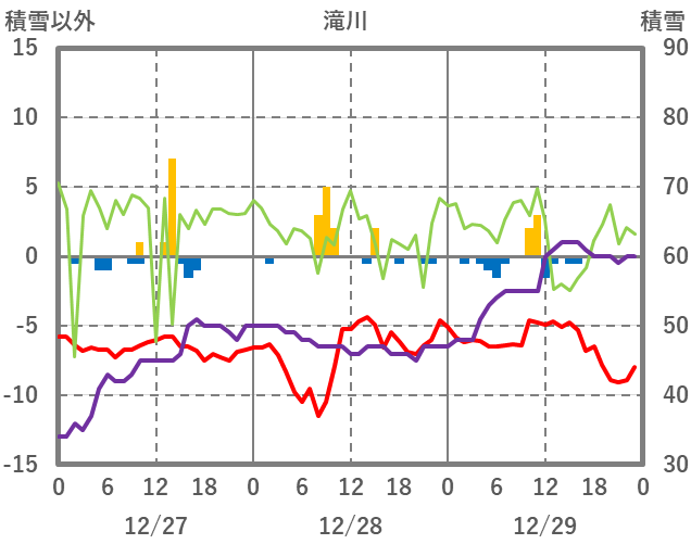 | 日 | 時 | 気温 | 降水 | 風向/風速 | 日照 | 積雪 | 降雪 |