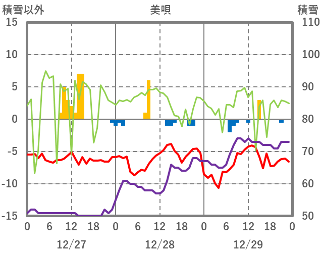 | 日 | 時 | 気温 | 降水 | 風向/風速 | 日照 | 積雪 | 降雪 |