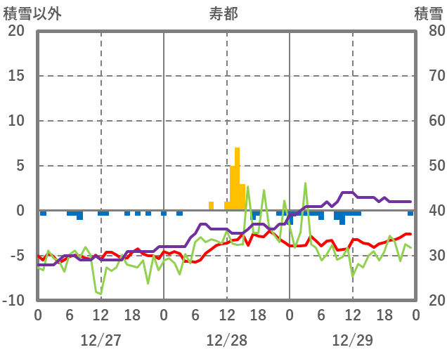 | 日 | 時 | 気温 | 降水 | 風向/風速 | 日照 | 積雪 | 降雪 |