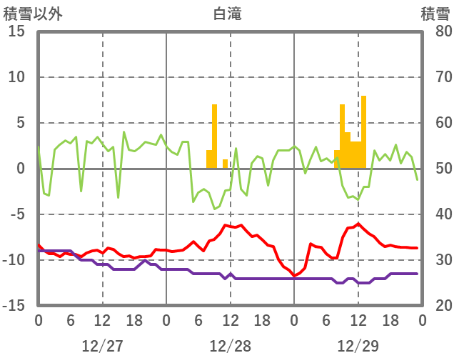 | 日 | 時 | 気温 | 降水 | 風向/風速 | 日照 | 積雪 | 降雪 |