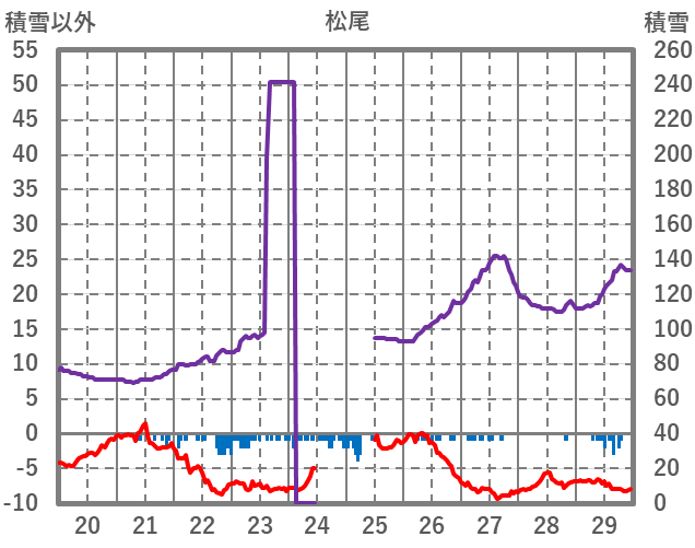 | 日 | 時 | 気温 | 降水 | 風向/風速 | 日照 | 積雪 | 降雪 |