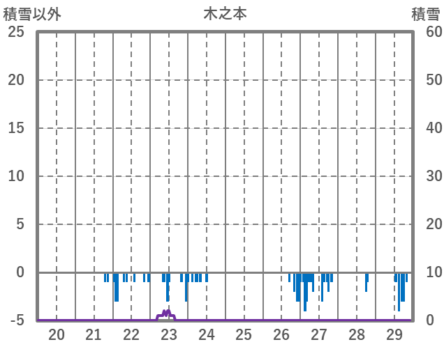 | 日 | 時 | 気温 | 降水 | 風向/風速 | 日照 | 積雪 | 降雪 |