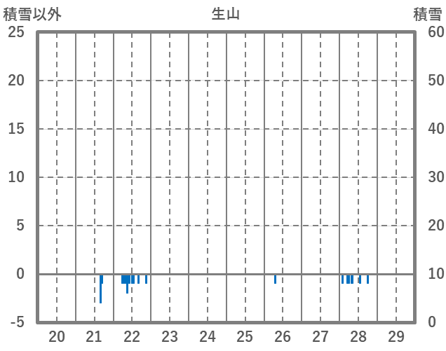 | 日 | 時 | 気温 | 降水 | 風向/風速 | 日照 | 積雪 | 降雪 |