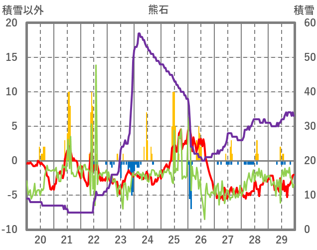 | 日 | 時 | 気温 | 降水 | 風向/風速 | 日照 | 積雪 | 降雪 |