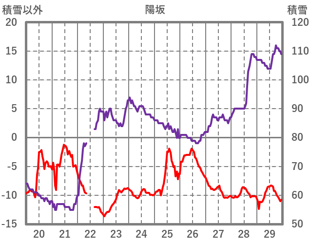 | 日 | 時 | 気温 | 降水 | 風向/風速 | 日照 | 積雪 | 降雪 |