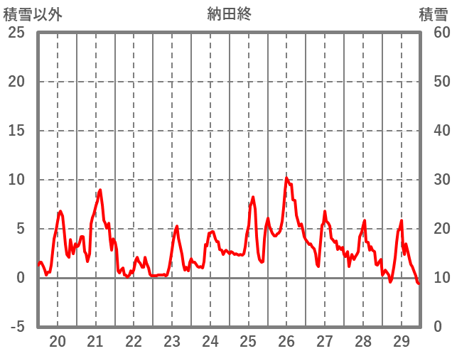 | 日 | 時 | 気温 | 降水 | 風向/風速 | 日照 | 積雪 | 降雪 |