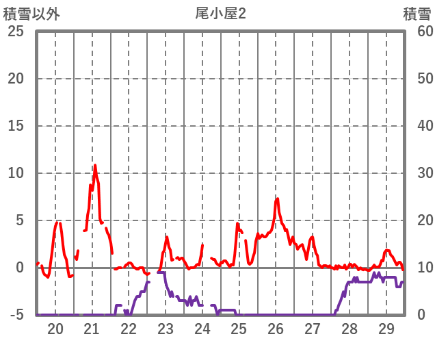 | 日 | 時 | 気温 | 降水 | 風向/風速 | 日照 | 積雪 | 降雪 |