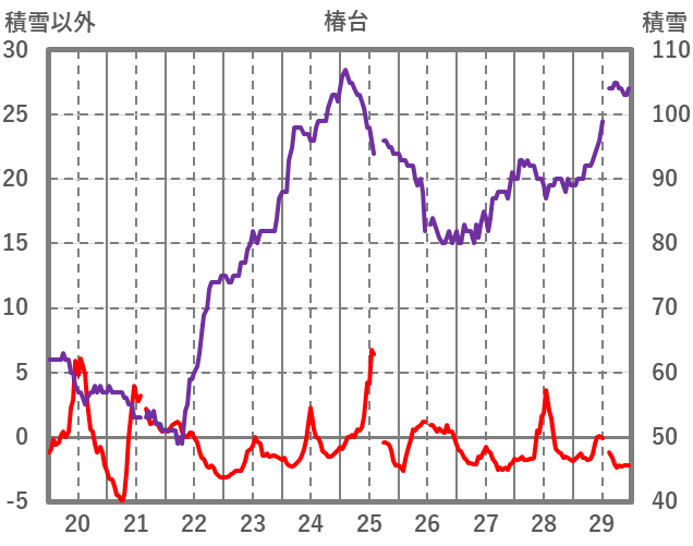 | 日 | 時 | 気温 | 降水 | 風向/風速 | 日照 | 積雪 | 降雪 |