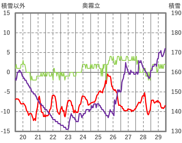 | 日 | 時 | 気温 | 降水 | 風向/風速 | 日照 | 積雪 | 降雪 |