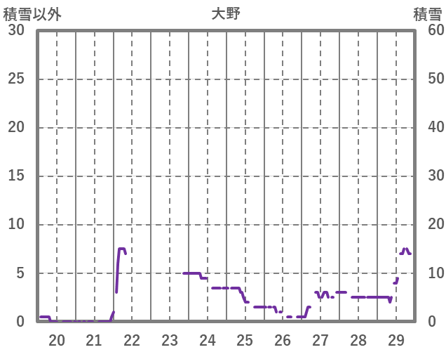 | 日 | 時 | 気温 | 降水 | 風向/風速 | 日照 | 積雪 | 降雪 |
