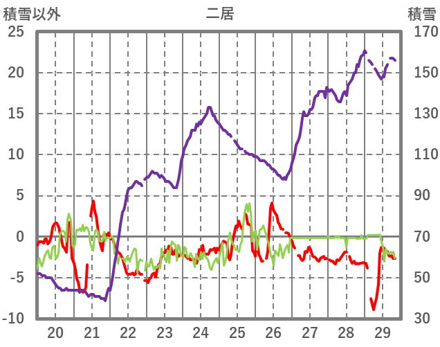 | 日 | 時 | 気温 | 降水 | 風向/風速 | 日照 | 積雪 | 降雪 |