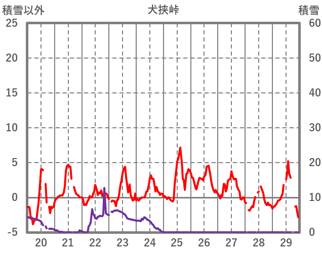 | 日 | 時 | 気温 | 降水 | 風向/風速 | 日照 | 積雪 | 降雪 |