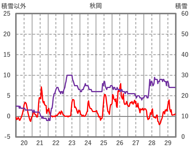 | 日 | 時 | 気温 | 降水 | 風向/風速 | 日照 | 積雪 | 降雪 |