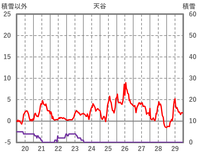 | 日 | 時 | 気温 | 降水 | 風向/風速 | 日照 | 積雪 | 降雪 |