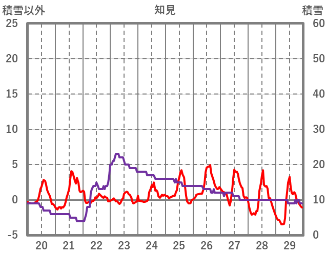 | 日 | 時 | 気温 | 降水 | 風向/風速 | 日照 | 積雪 | 降雪 |
