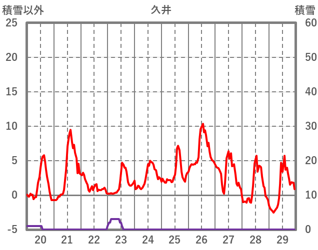 | 日 | 時 | 気温 | 降水 | 風向/風速 | 日照 | 積雪 | 降雪 |