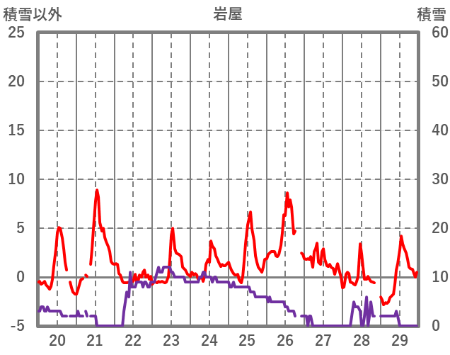 | 日 | 時 | 気温 | 降水 | 風向/風速 | 日照 | 積雪 | 降雪 |