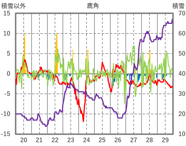 | 日 | 時 | 気温 | 降水 | 風向/風速 | 日照 | 積雪 | 降雪 |