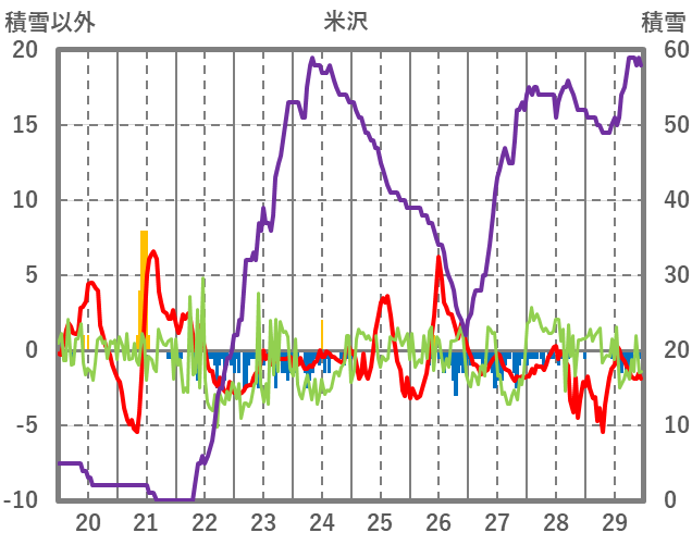 | 日 | 時 | 気温 | 降水 | 風向/風速 | 日照 | 積雪 | 降雪 |