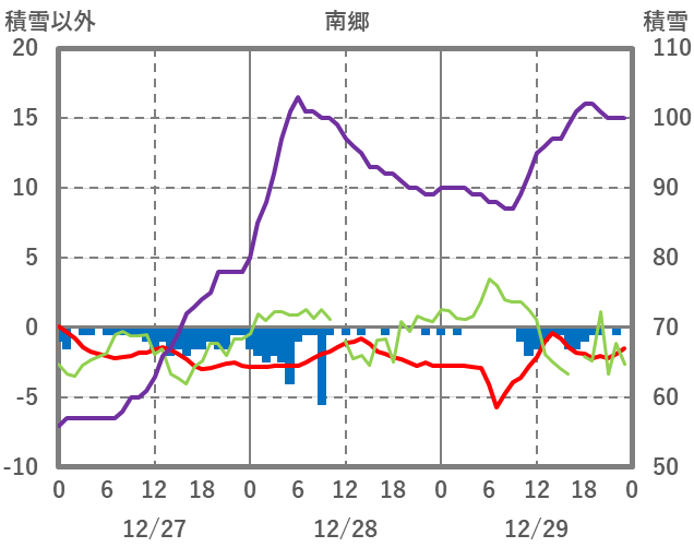 | 日 | 時 | 気温 | 降水 | 風向/風速 | 日照 | 積雪 | 降雪 |