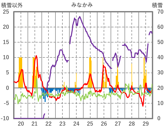 | 日 | 時 | 気温 | 降水 | 風向/風速 | 日照 | 積雪 | 降雪 |