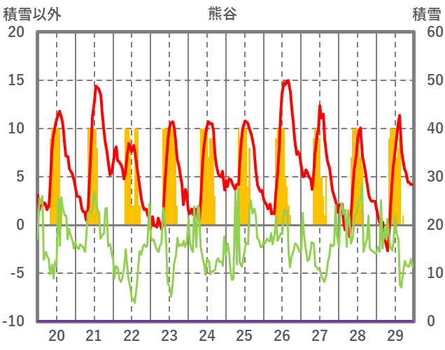 | 日 | 時 | 気温 | 降水 | 風向/風速 | 日照 | 積雪 | 降雪 |