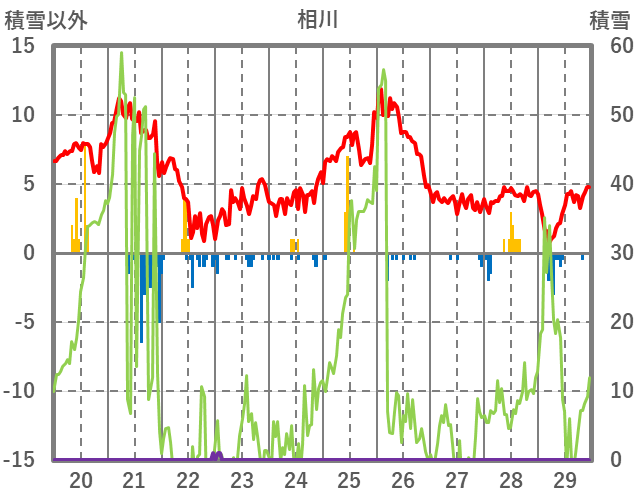 | 日 | 時 | 気温 | 降水 | 風向/風速 | 日照 | 積雪 | 降雪 |